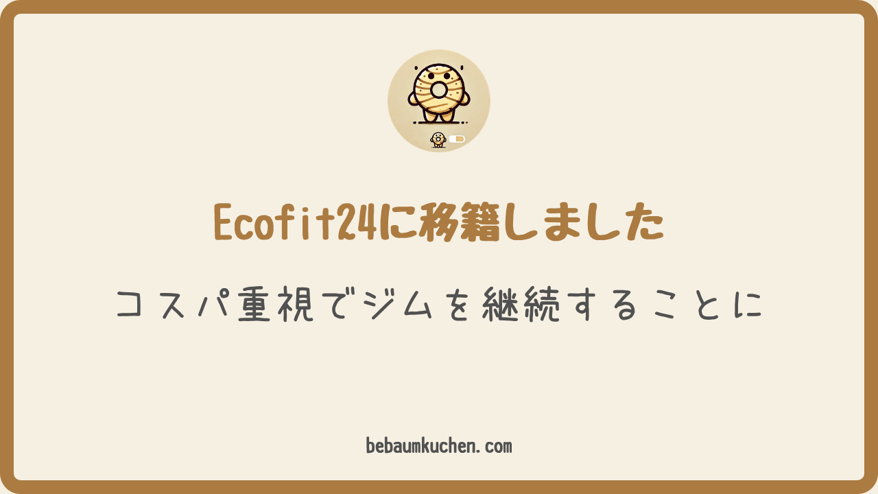 これまで利用していたLifefitから、Ecofit24へ移籍しました。
